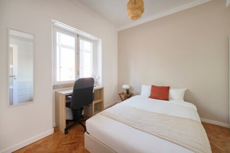 Beautiful double bedroom in Amoreiras. The flat is on the 2nd floor and the building has elevator. It`s a 6- room apartment with 3 bathrooms (one of them belongs to an ensuite). It is located 5 min walking distance from Amoreiras shopping center, 5 min walking distance from Rato metro station (yellow line) and 1 min walking distance from Fitness hut (low- cost gym). The bills (water, electricity, gas and wifi) are included in the price as well as weekly cleaning of all common areas twice a week.