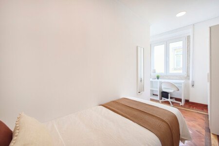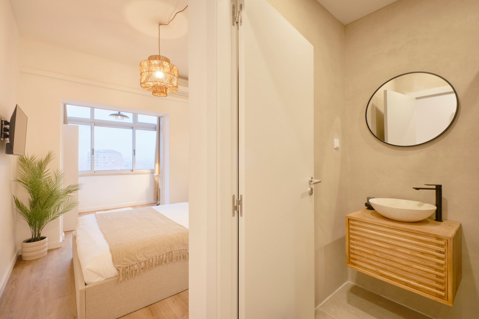 Beautiful ensuite with private bathroom in Campolide. The flat is on the 5th floor and has elevator. It`s a 9- room apartment with 9 full bathrooms, only 2 rooms share 2 bathrooms, all others belong to the other rooms. It is located 5min walking distance from Amoreiras, 10min from Marquês de Pombal metro station (blue and yellow line) and also 10min from São Sebastião metro station (red and blue line). The bills (water, electricity, gas and wifi) are included in the price as well as weekly cleaning of all common areas twice a week.