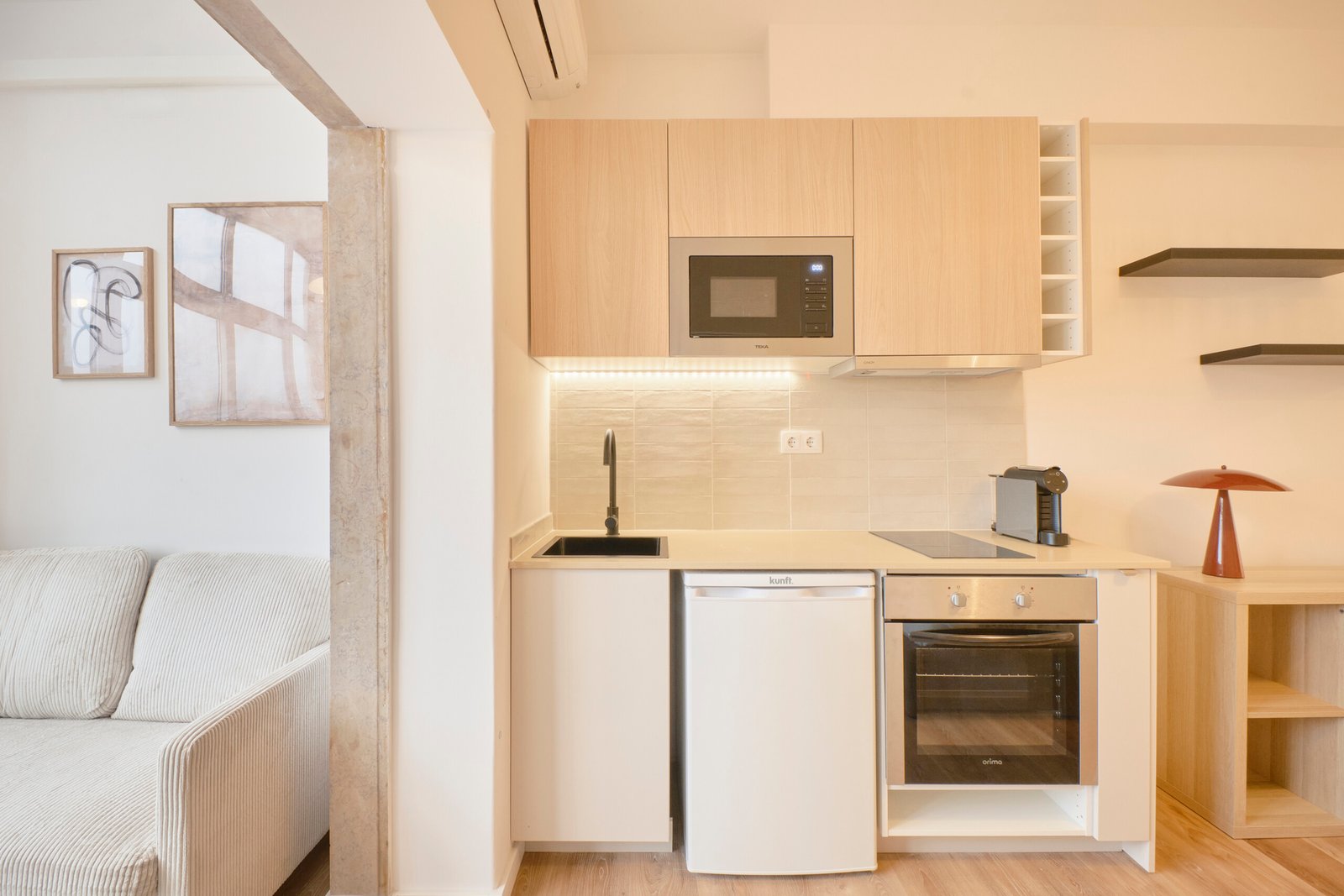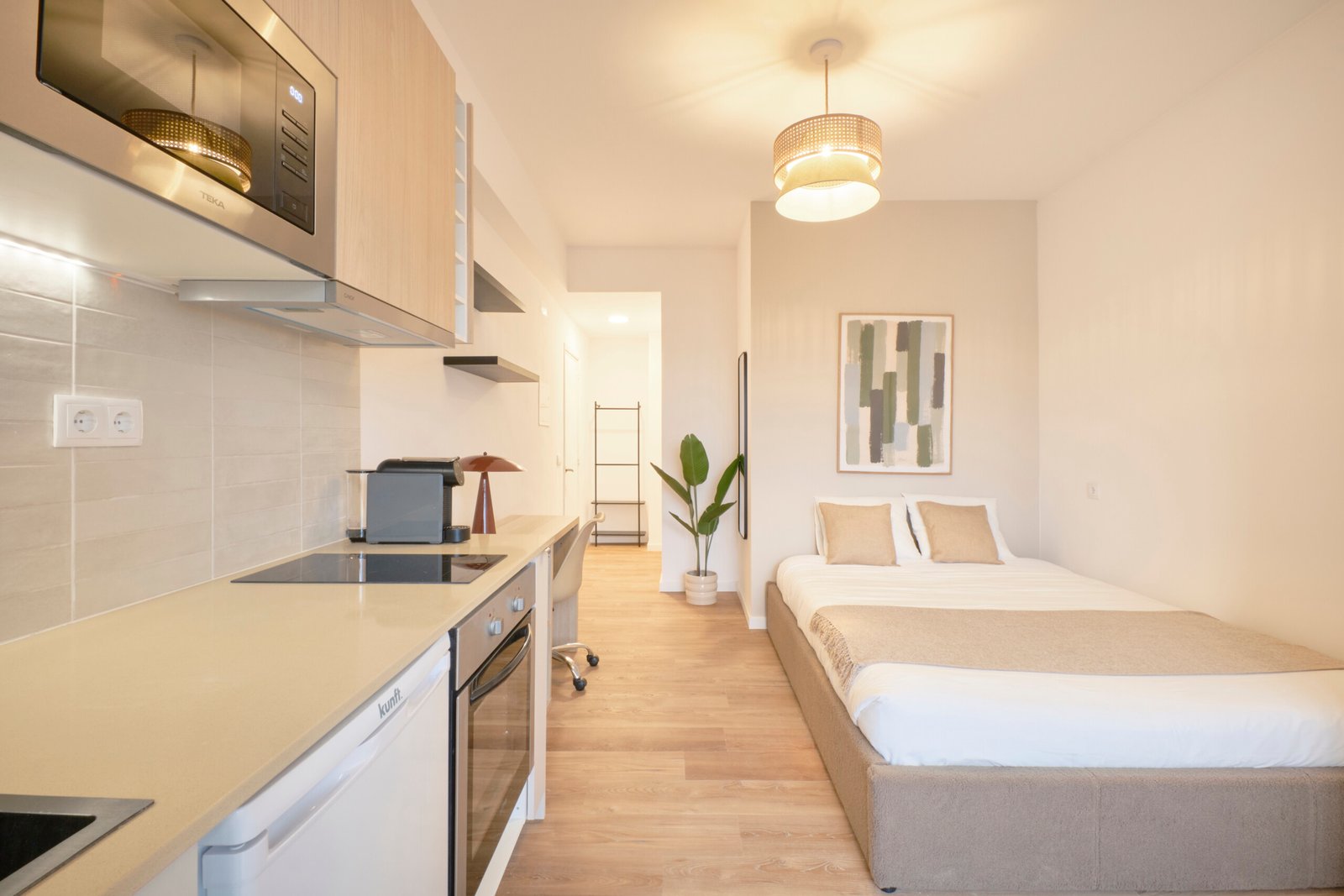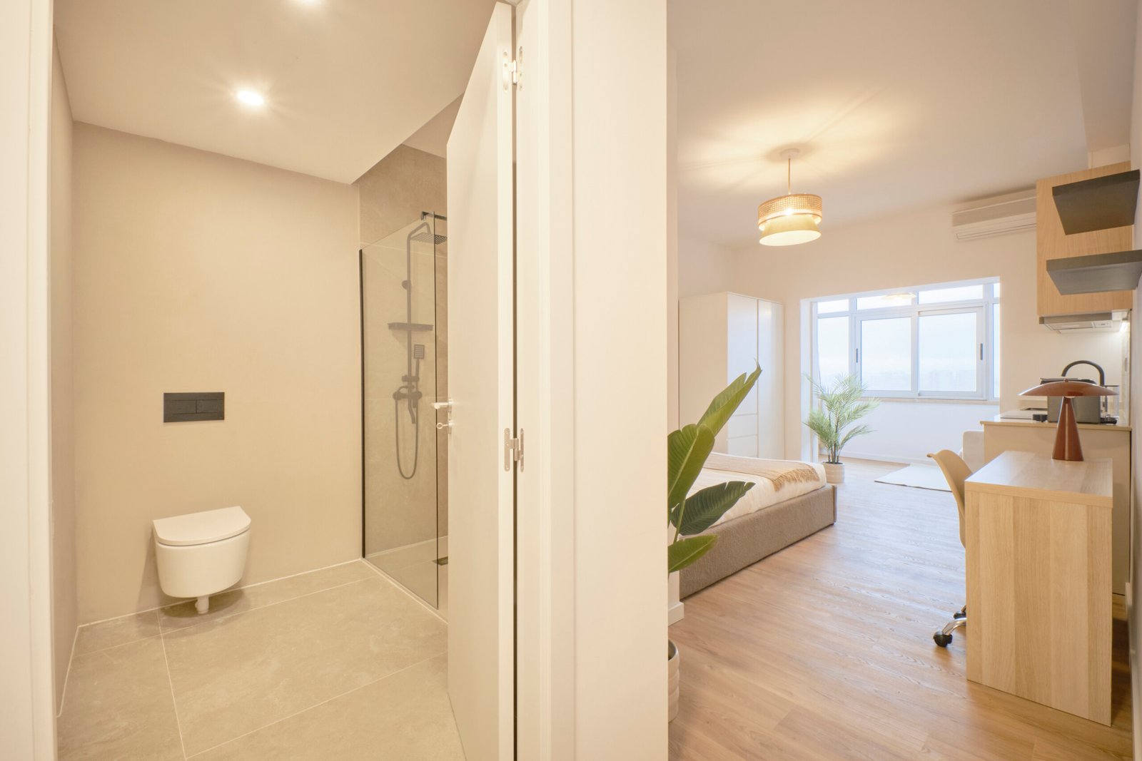 Beautiful studio with private kitchen and bathroom in Campolide. The flat is on the 5th floor and has elevator. It`s a 9- room apartment with 9 full bathrooms, only 2 rooms share 2 bathrooms, all others belong to the other rooms. It is located 5min walking distance from Amoreiras, 10min from Marquês de Pombal metro station (blue and yellow line) and also 10min from São Sebastião metro station (red and blue line). The bills (water, electricity, gas and wifi) are included in the price as well as weekly cleaning of all common areas twice a week.