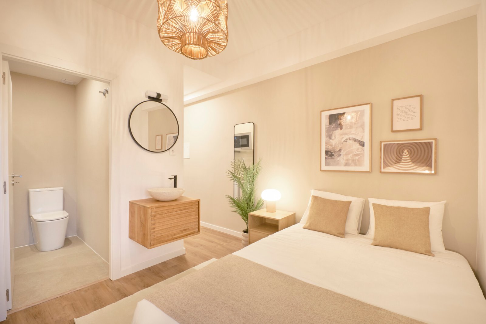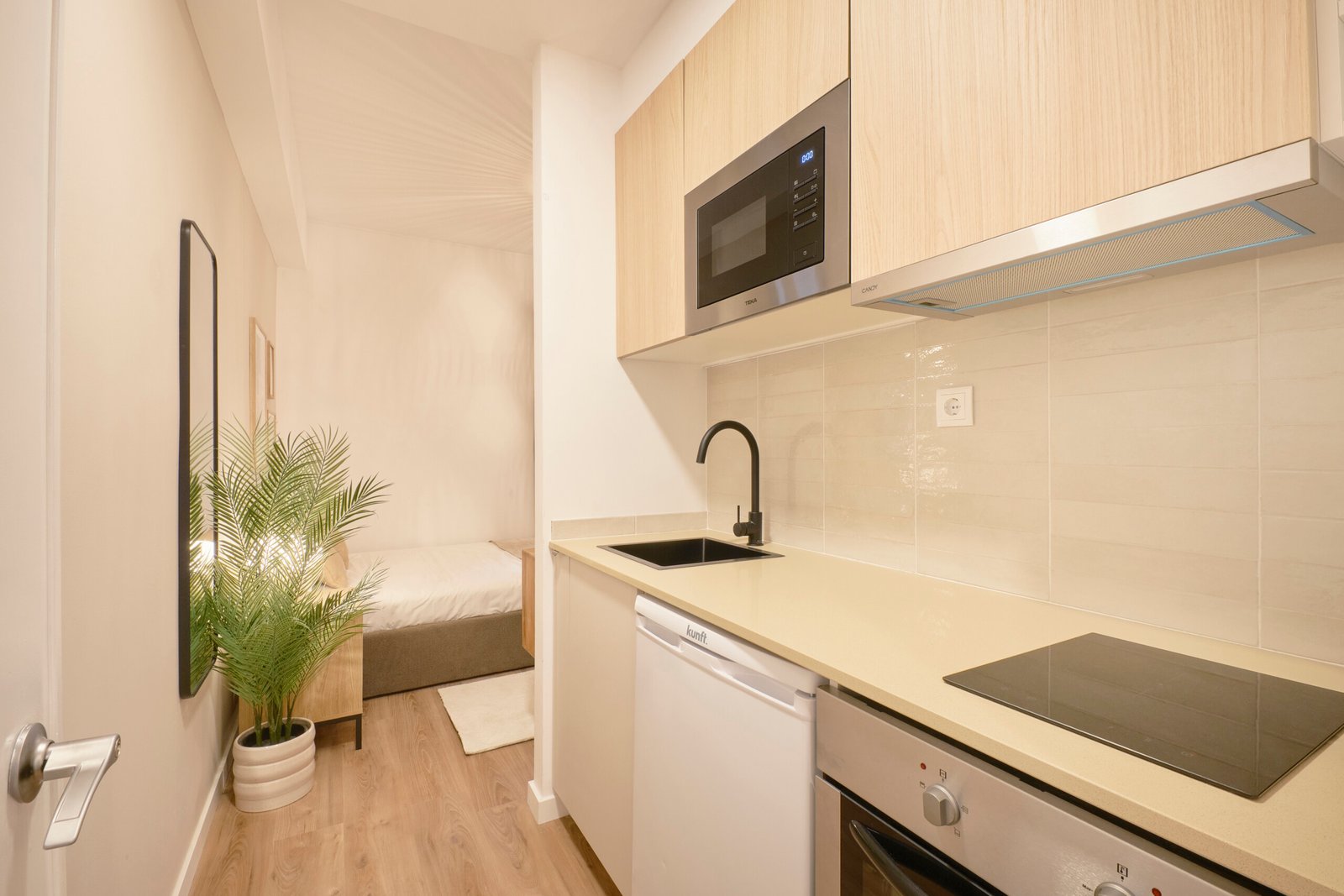 Beautiful studio with private kitchen and bathroom in Campolide. The flat is on the 5th floor and has elevator. It`s a 9- room apartment with 9 full bathrooms, only 2 rooms share 2 bathrooms, all others belong to the other rooms. It is located 5min walking distance from Amoreiras, 10min from Marquês de Pombal metro station (blue and yellow line) and also 10min from São Sebastião metro station (red and blue line). The bills (water, electricity, gas and wifi) are included in the price as well as weekly cleaning of all common areas twice a week.
