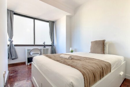 Beautiful single bedroom in São Sebastião. The flat is on the 5th floor and has elevator. It`s a 9- room apartment with 2 full bathrooms. It is located 1min walking to São Sebastião metro station (red and blue line) and in front of El Corte Inglés and Parque Eduardo VII. The bills (water, electricity, gas and wifi) are included in the price as well as weekly cleaning of all common areas twice a week.