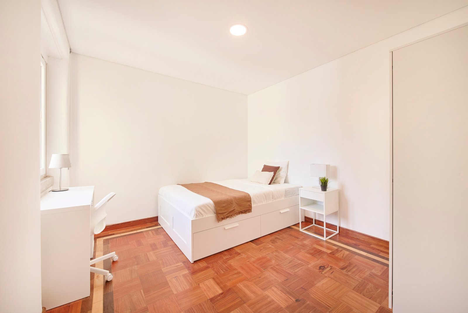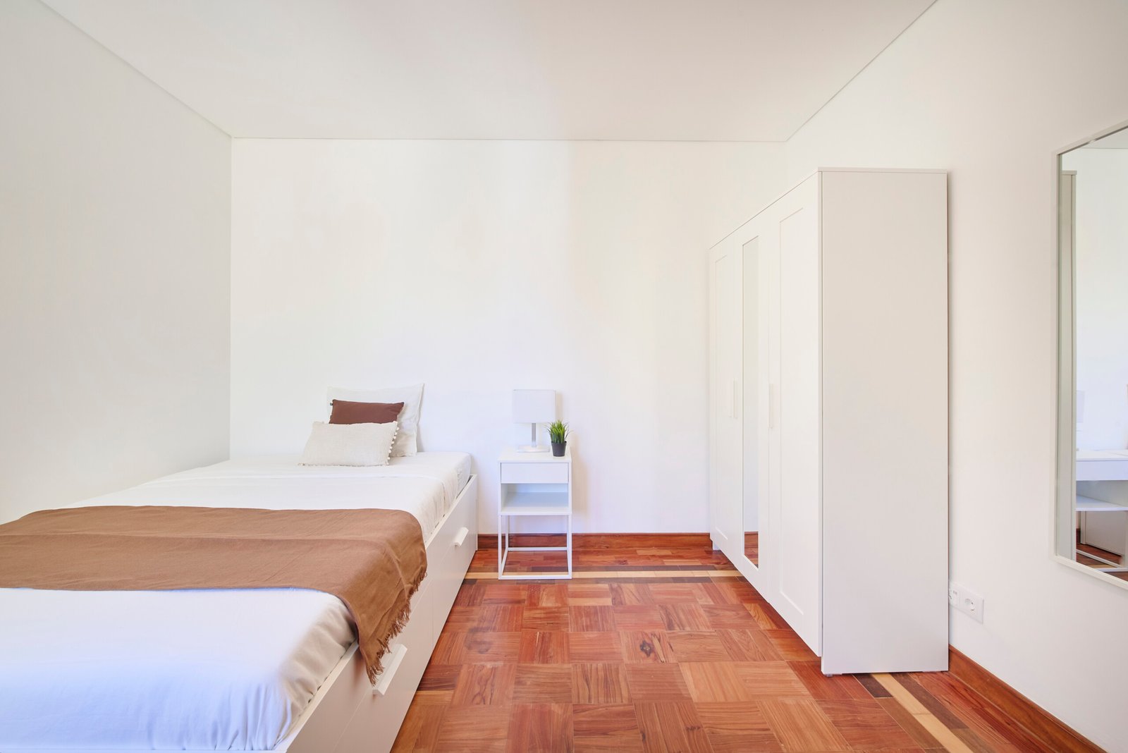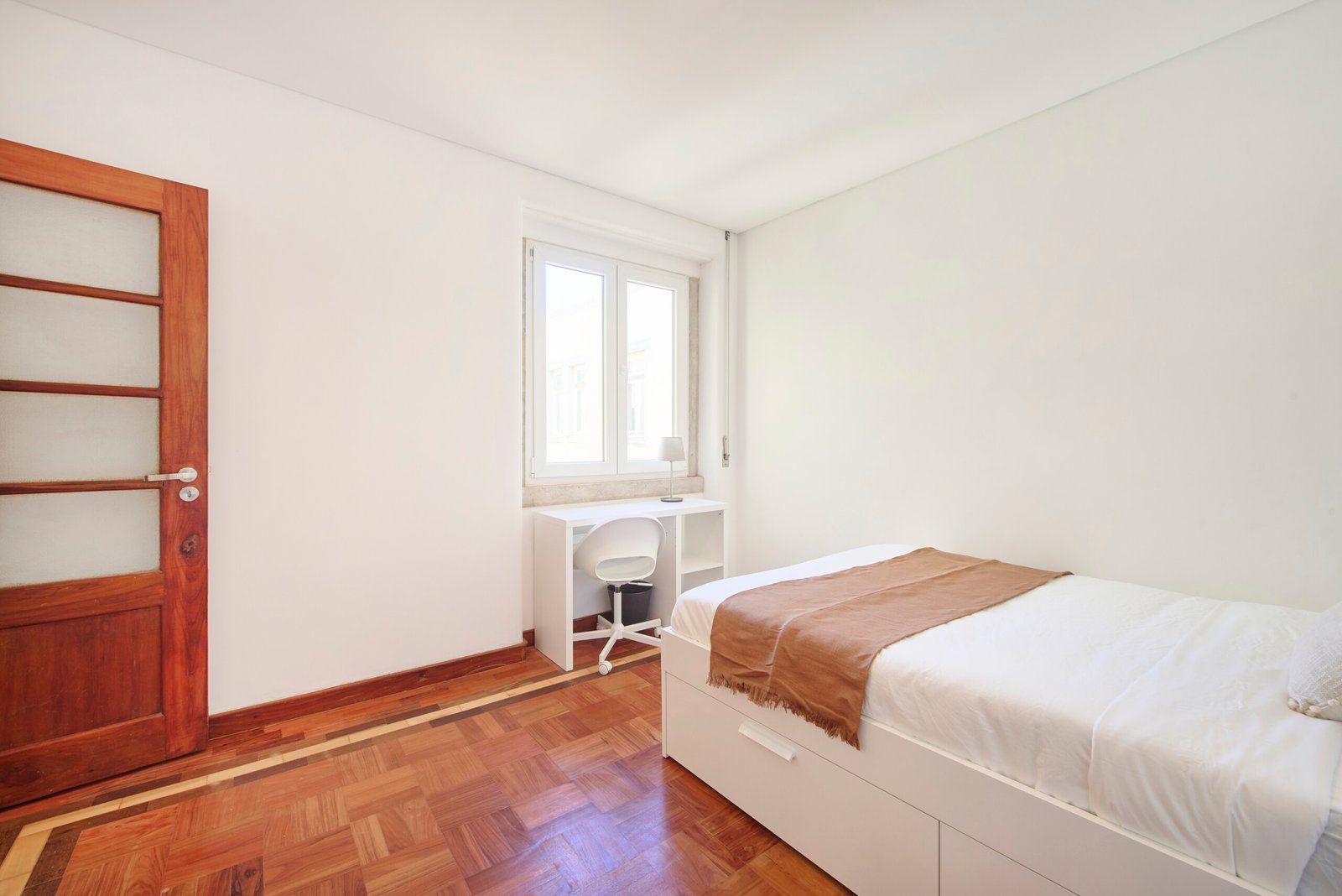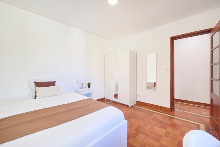 Beautiful double bedroom in São Sebastião. The flat is on the 5th floor and has elevator. It`s a 9- room apartment with 2 full bathrooms. It is located 1min walking to São Sebastião metro station (red and blue line) and in front of El Corte Inglés and Parque Eduardo VII. The bills (water, electricity, gas and wifi) are included in the price as well as weekly cleaning of all common areas twice a week.
