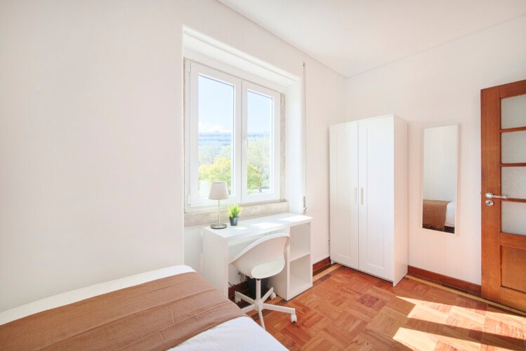 Beautiful single bedroom in São Sebastião. The flat is on the 5th floor and has elevator. It`s a 9- room apartment with 2 full bathrooms. It is located 1min walking to São Sebastião metro station (red and blue line) and in front of El Corte Inglés and Parque Eduardo VII. The bills (water, electricity, gas and wifi) are included in the price as well as weekly cleaning of all common areas twice a week.
