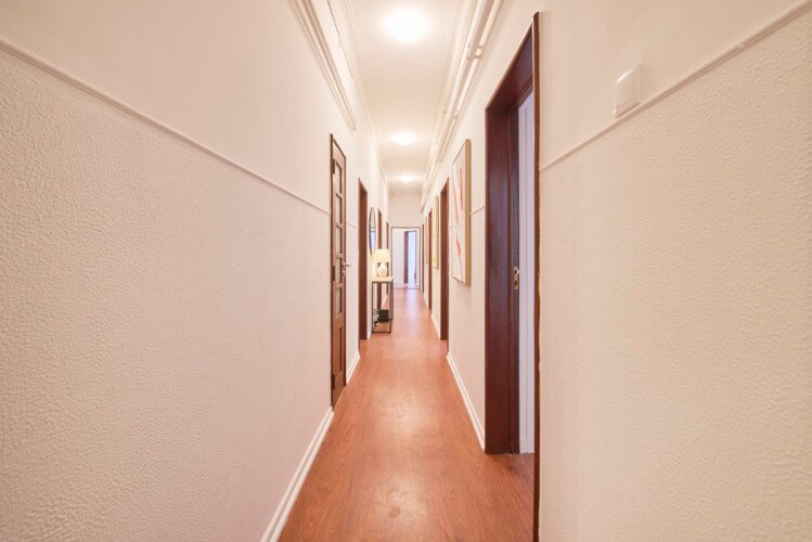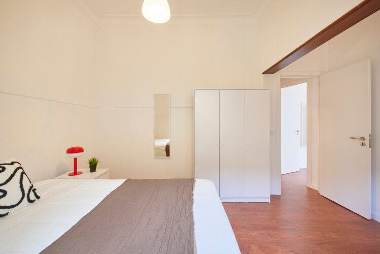 Beautiful double bedroom in Lapa (Estrela). The flat is on a high ground floor and has elevator. It`s an 11- room apartment with 6 full bathrooms and an extra toilet, one of the bathrooms belongs to an ensuite and another one to a studio. It is located 5min walking distance from Santos and 10min walking to Rato metro station (yellow line) and very close to Estrela Park. The bills (water, electricity, gas and wifi) are included in the price as well as weekly cleaning of all common areas twice a week.