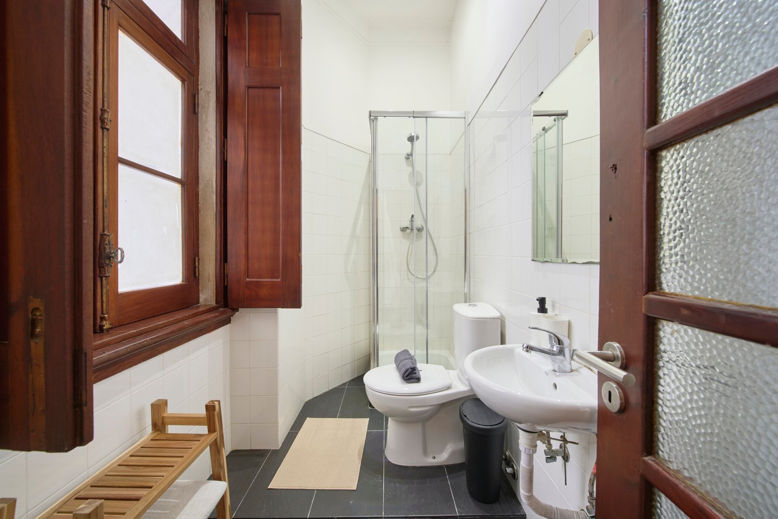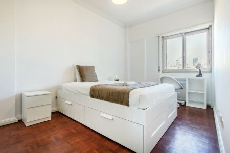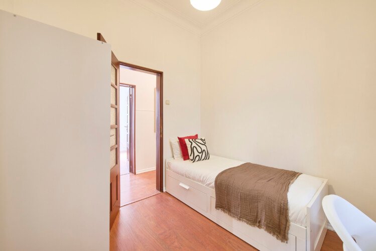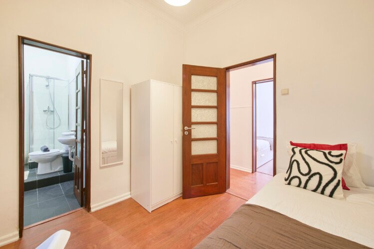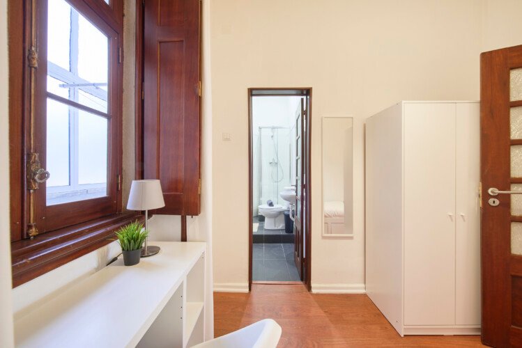 Beautiful ensuite with single bed and private bathroom in Lapa (Estrela). The flat is on a high ground floor and has elevator. It`s an 11- room apartment with 6 full bathrooms and an extra toilet, one of the bathrooms belongs to an ensuite and another one to a studio. It is located 5min walking distance from Santos and 10min walking to Rato metro station (yellow line) and very close to Estrela Park. The bills (water, electricity, gas and wifi) are included in the price as well as weekly cleaning of all common areas twice a week.