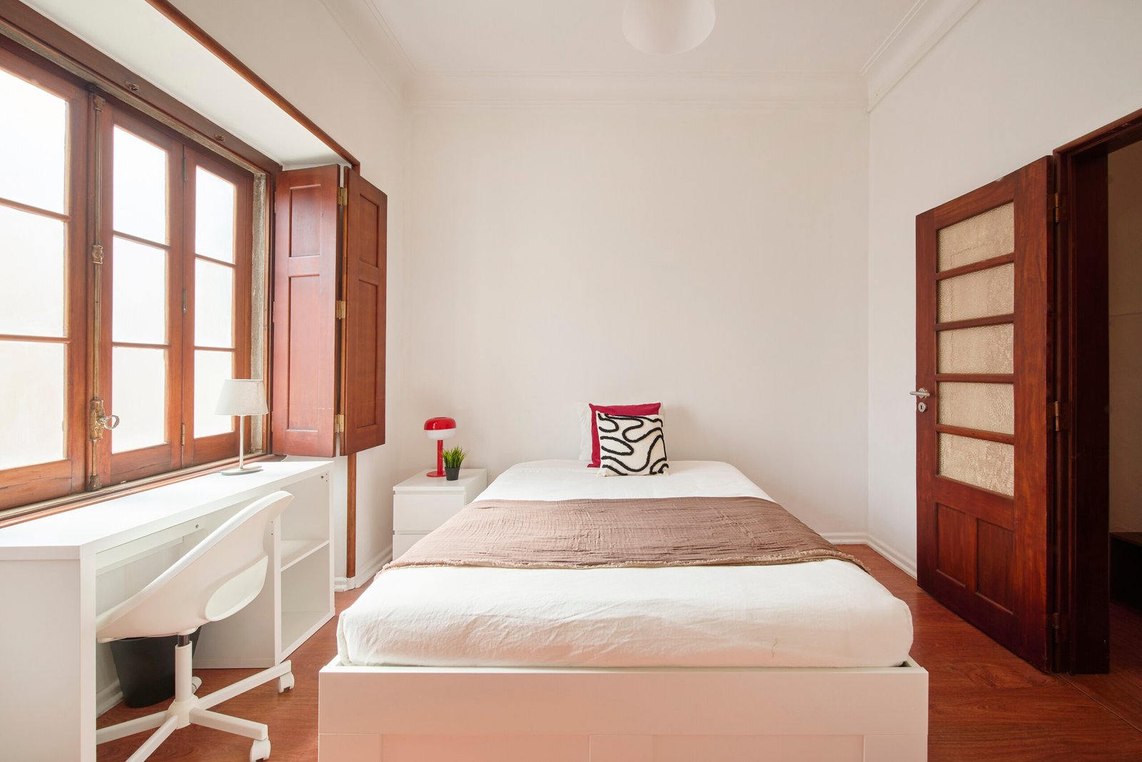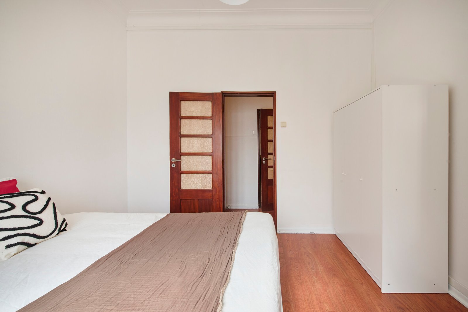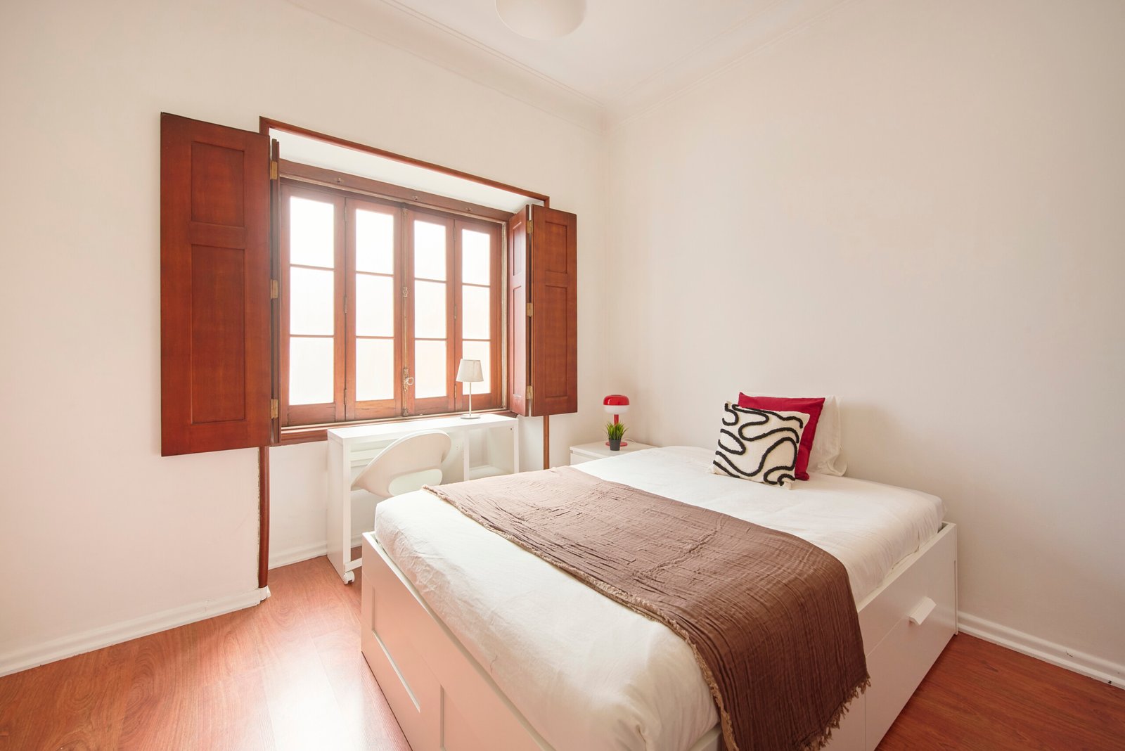 Beautiful double bedroom in Lapa (Estrela). The flat is on a high ground floor and has elevator. It`s an 11- room apartment with 6 full bathrooms and an extra toilet, one of the bathrooms belongs to an ensuite and another one to a studio. It is located 5min walking distance from Santos and 10min walking to Rato metro station (yellow line) and very close to Estrela Park. The bills (water, electricity, gas and wifi) are included in the price as well as weekly cleaning of all common areas twice a week.