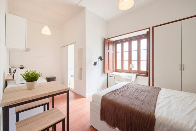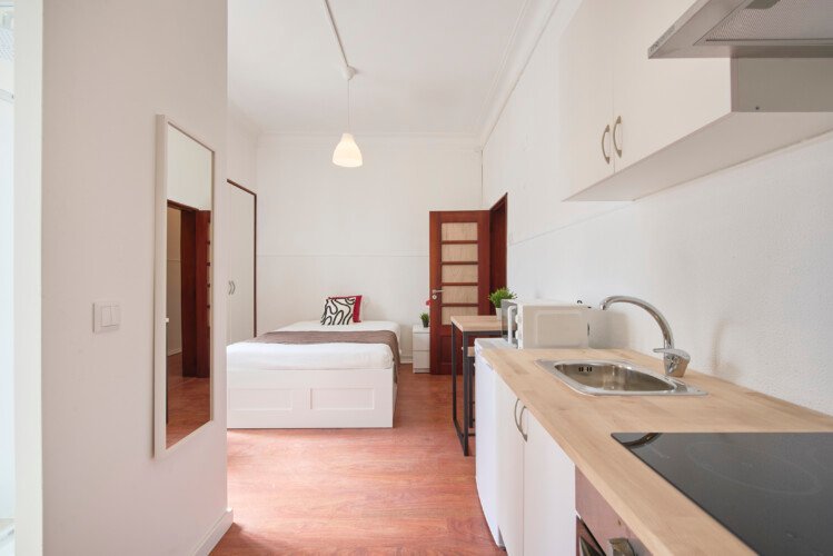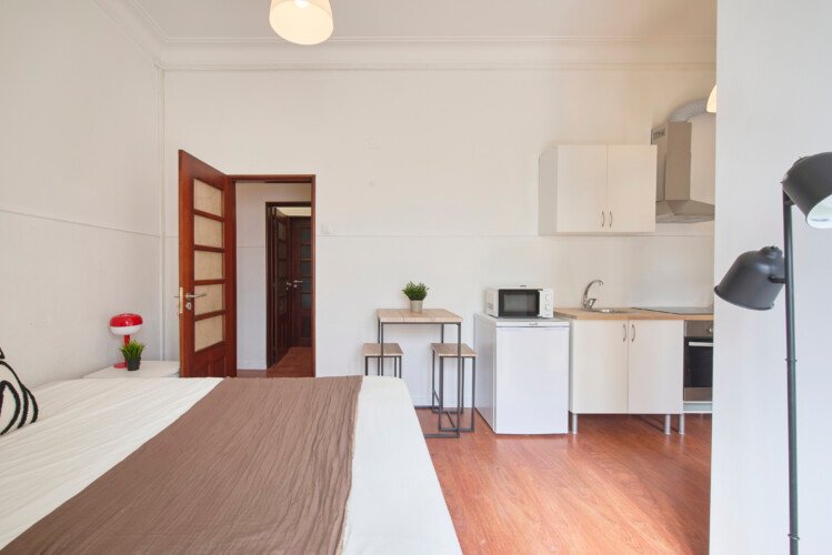 Beautiful studio in Lapa (Estrela). The flat is on a high ground floor and has elevator. It`s a studio with private kitchen and bathroom inserted in an shared apartment. It is located 5min walking distance from Santos and 10min walking to Rato metro station (yellow line) and very close to Estrela Park. The bills (water, electricity, gas and wifi) are included in the price as well as weekly cleaning of all common areas twice a week.